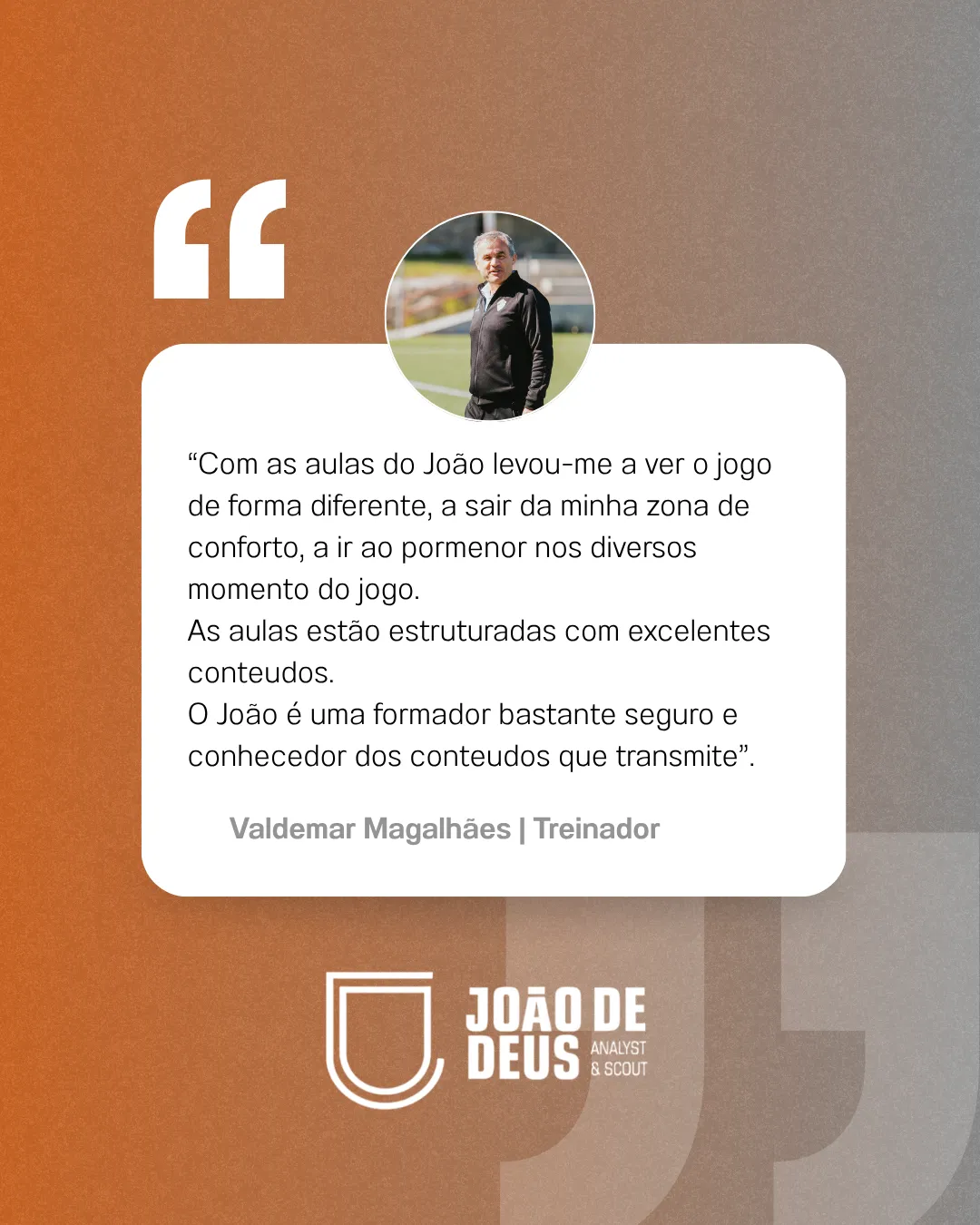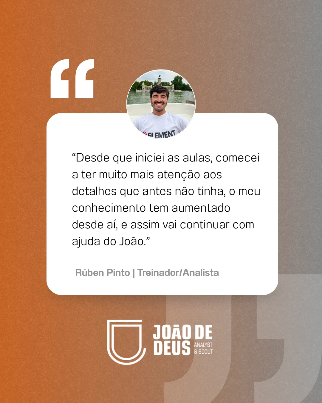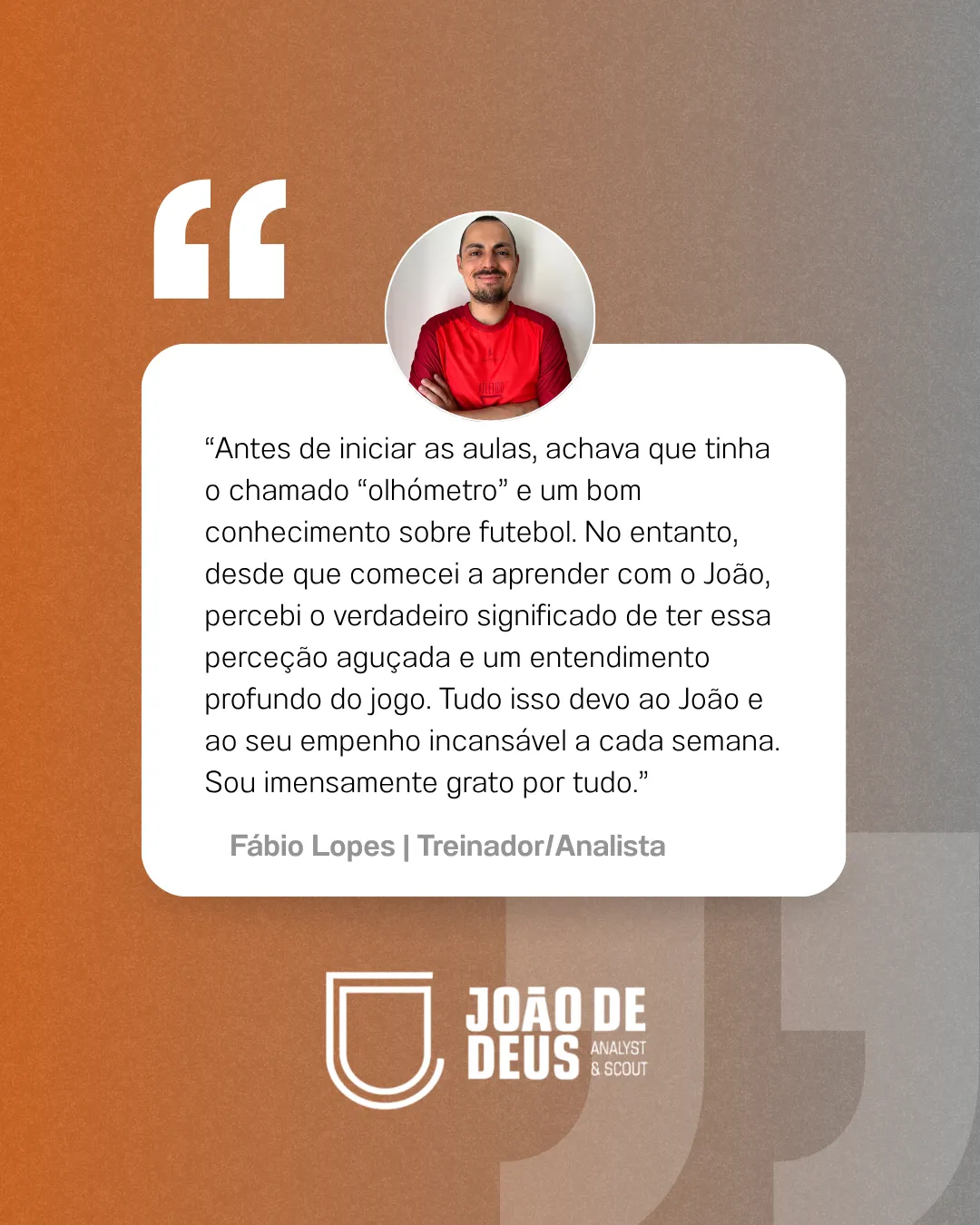Hoje, dedico-me a ensinar análise tática, ajudando apaixonados pelo futebol a ver o jogo como profissionais e a dar os primeiros passos no mundo do futebol.