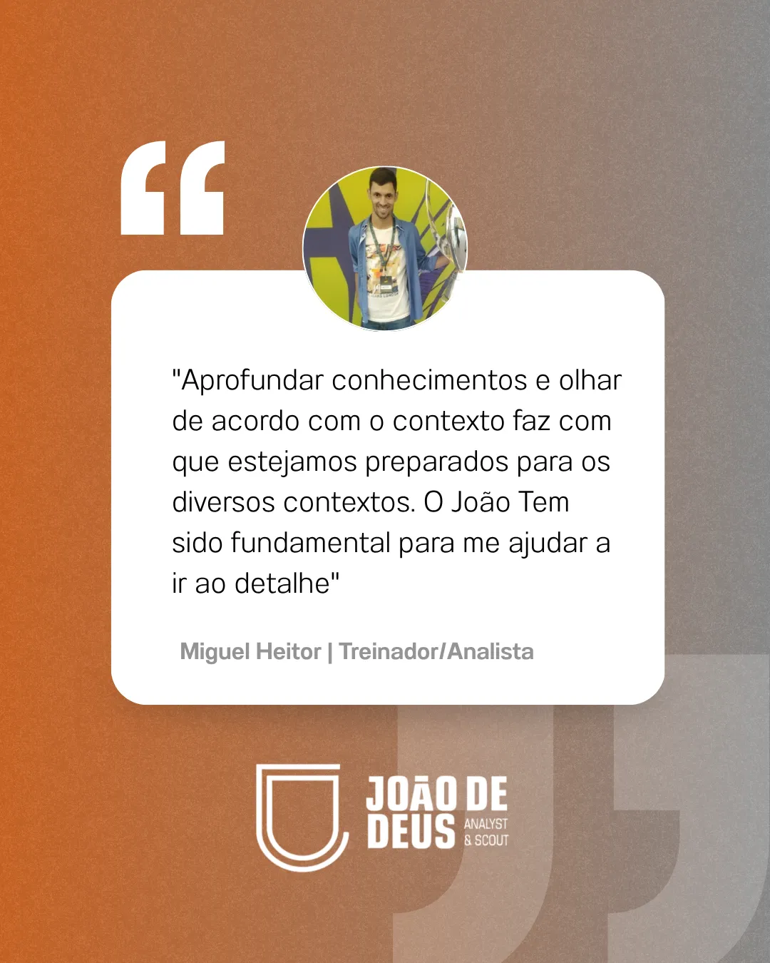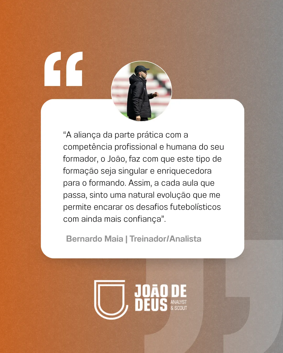Desde 2017, construí a minha experiência como analista e treinador adjunto em clubes como Sousense, Leixões Sub23 e Fafe, passando pela Liga 3 e Liga Revelação.